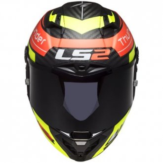 El casco LS2 FF805 THUNDER es un casco integral de competición, que presenta un diseño aerodinámico excelente, ligero y muy resistente. Su calota exterior está fabricada totalmente en fibra de carbono; mientras que su interior, formado por almohadillas de espuma cortada a láser, es hipoalergénico, transpirable, extraíble y lavable. Este casco ofrece una gran visión periférica con visera ancha resistente a los rasguños y a los rayos UV. Además, dispone de un sistema de ventilación optimizado con entradas frontales y superiores y salida posterior, y cierre de doble anillo en forma de ‘D’.